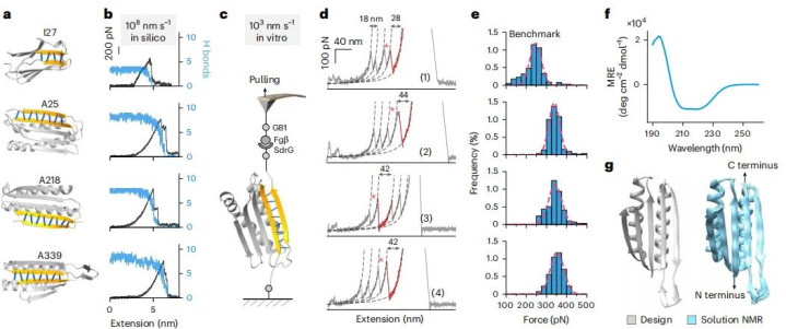 突破的起点是一个关键观察。人体肌肉的弹性来自肌联蛋白,它由数百个球状结构域串联而成。其中名为I27的结构域在原子力显微镜下呈现三明治状结构,内部由β折叠片通过氢键连接。当肌肉拉伸时,这些氢键会断裂,但断裂方式决定了所需力量。