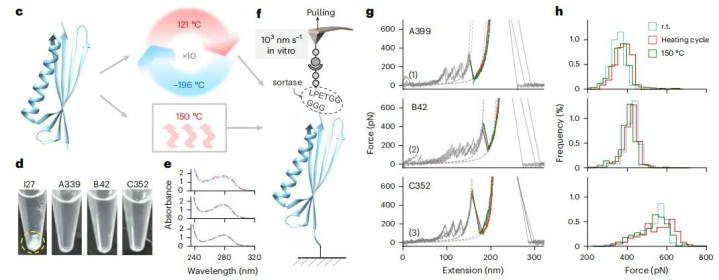 SuperMyo的优势不仅在于强度。天然I27在70摄氏度左右就会变性失活,而SuperMyo即使加热到100摄氏度其二级结构仍保持稳定,某些变体甚至能承受150摄氏度。这种热稳定性源于密集的氢键网络。